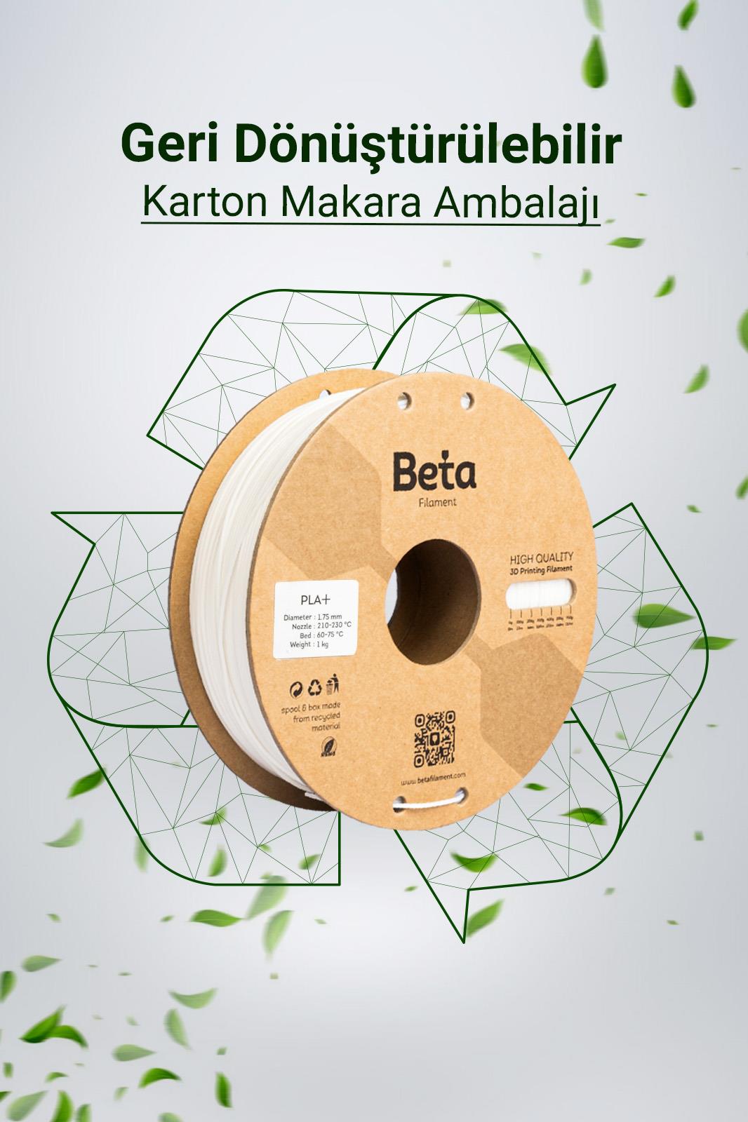 Çevre Dostu ve Kolay Kullanım: Beta PLA+ filament, biyobozunabilir bir malzemedir ve genellikle yenilenebilir kaynaklardan elde edilir. Bu, çevre dostu bir 3D baskı çözümü sunar. Beta PLA+ filament, düşük sıcaklıkta baskı yapma yeteneği ile kullanıcı dostudur. Bu, baskı işlemi sırasında enerji tasarrufu sağlar ve aynı zamanda filamentin geniş bir 3D yazıcı yelpazesinde kullanılmasını mümkün kılar.