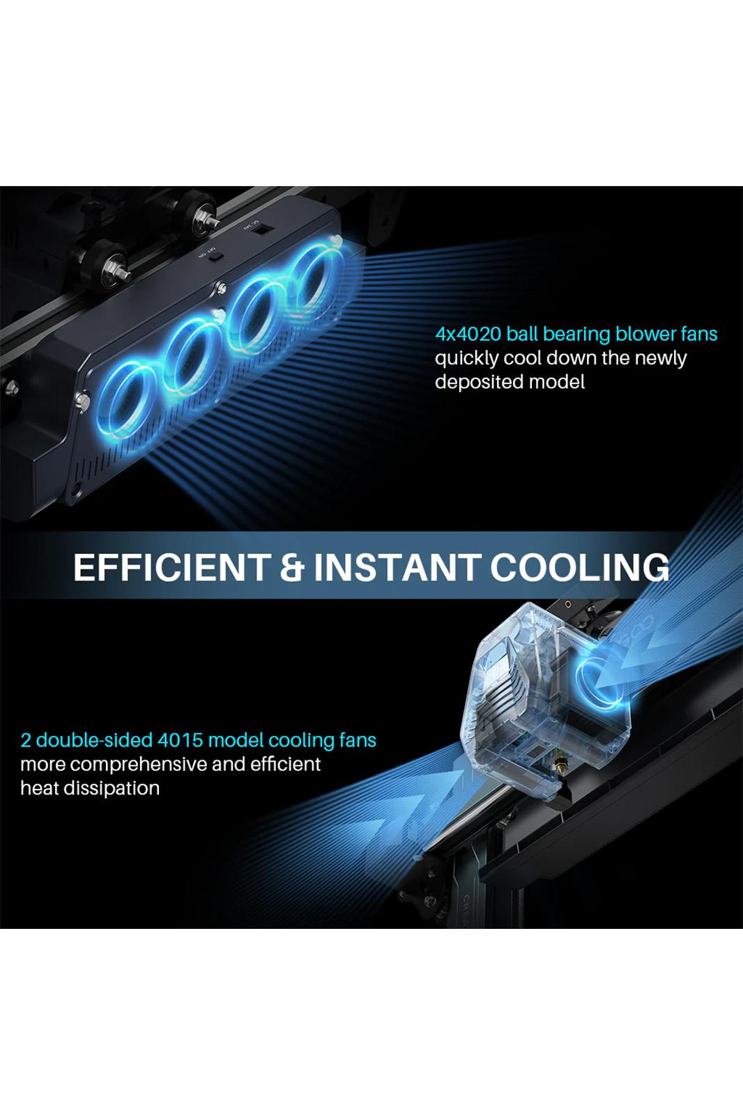 ♦Verimli ve Anında Soğutma: Daha kapsamlı ve verimli ısı dağılımı için kuvvetli rüzgara sahip 2 adet kalınlaştırılmış çift taraflı 4015 model soğutma fanı ve yeni yerleştirilen modeli hızlı bir şekilde soğutmak için baskı kafasının arkasındaki 4x4020 bilyeli fanlar çok yüksek baskı hızlarında bile baskı kalitesi.