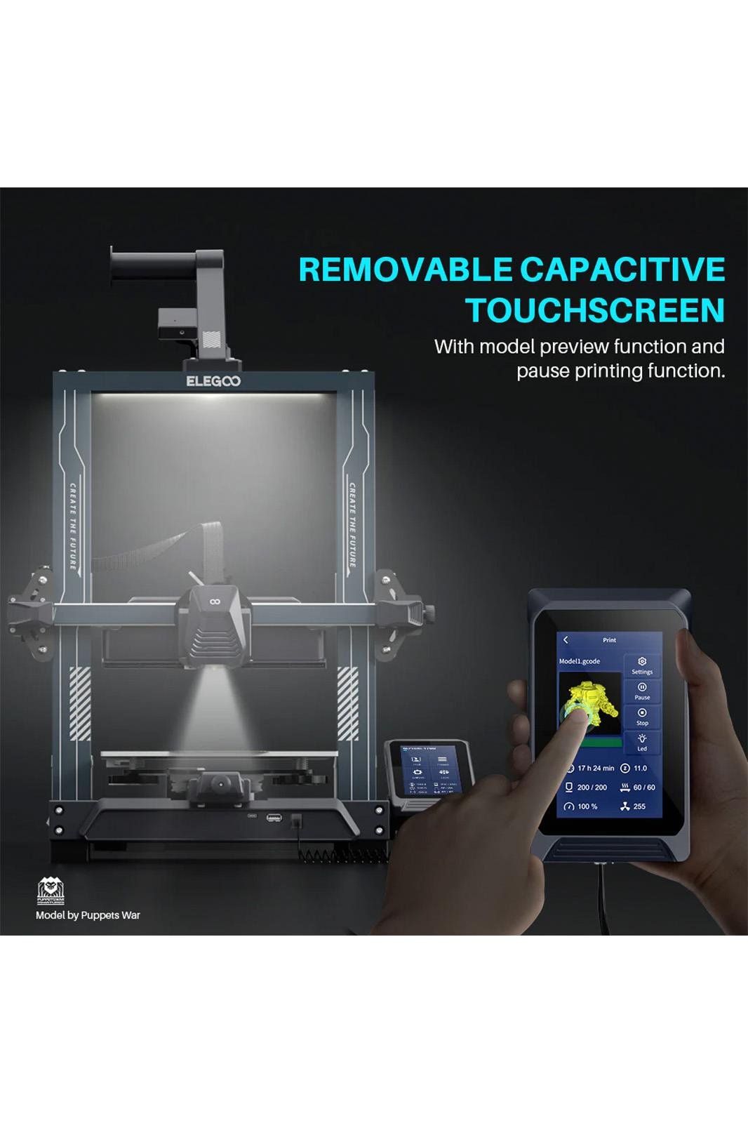 4,3 inç çıkarılabilir kapasitif ekran, 8 dili destekler ve elde taşınabilir veya makine tabanında sabit olarak kullanılabilir. Yazdırma ilerlemesini izlemek ve gerektiğinde ayarlamalar yapmak için basılı bir model önizlemesi ve yazdırmayı duraklatma işlevine sahiptir.