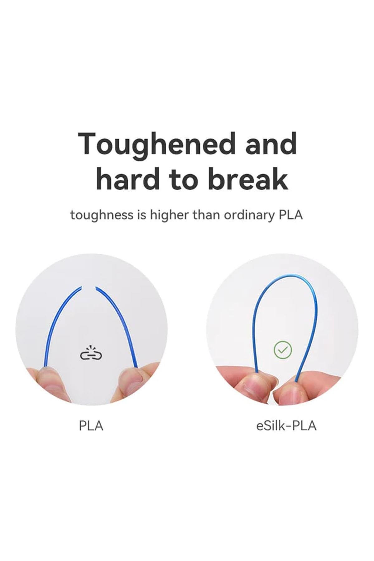 *İpek pla filament, PLA malzemesinden modifiye edilmiştir, PLA kadar kolay yazdırılır. Yüksek tokluk, pla ipek filamentin avantajlarından biridir.