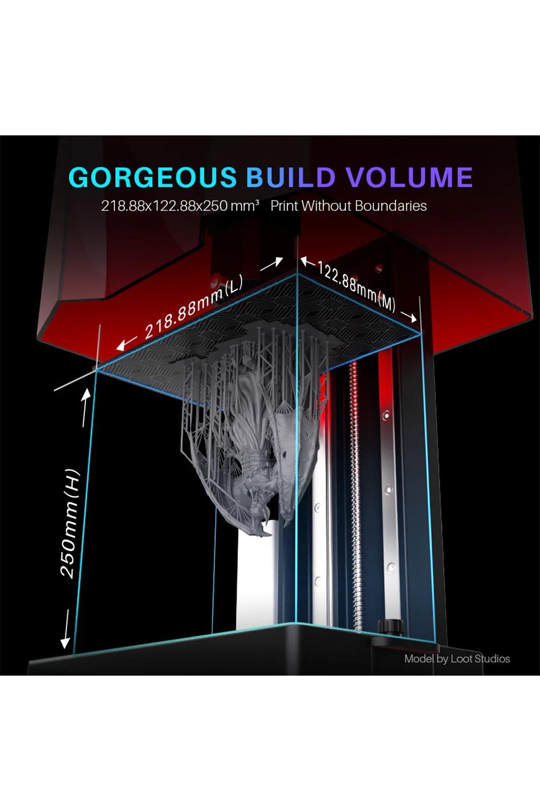 Cömert Yapı Hacmi: 218,88x122,88x250 mm³/8,62x4,84x9,84 inçlik cömert yapı hacmiyle, daha fazla esneklik ve çok yönlülük için daha büyük modelleri ve daha iddialı projeleri basmayı deneyebilirsiniz.